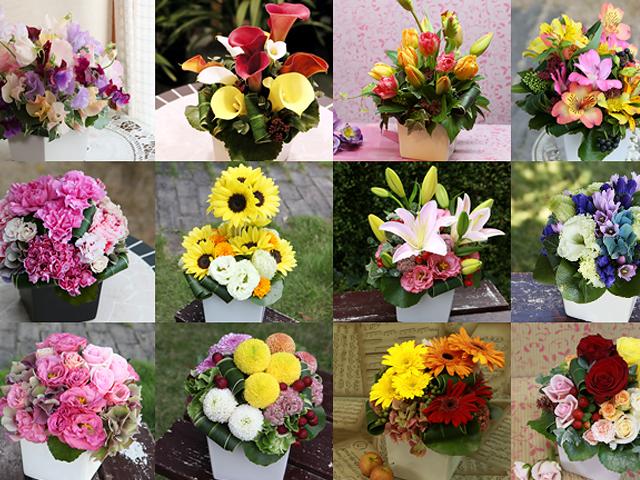 季節のお花でお作りしますので、画像とは異なります。その日その季節の一番よい花で、お客様だけのオリジナル商品をお届けします。